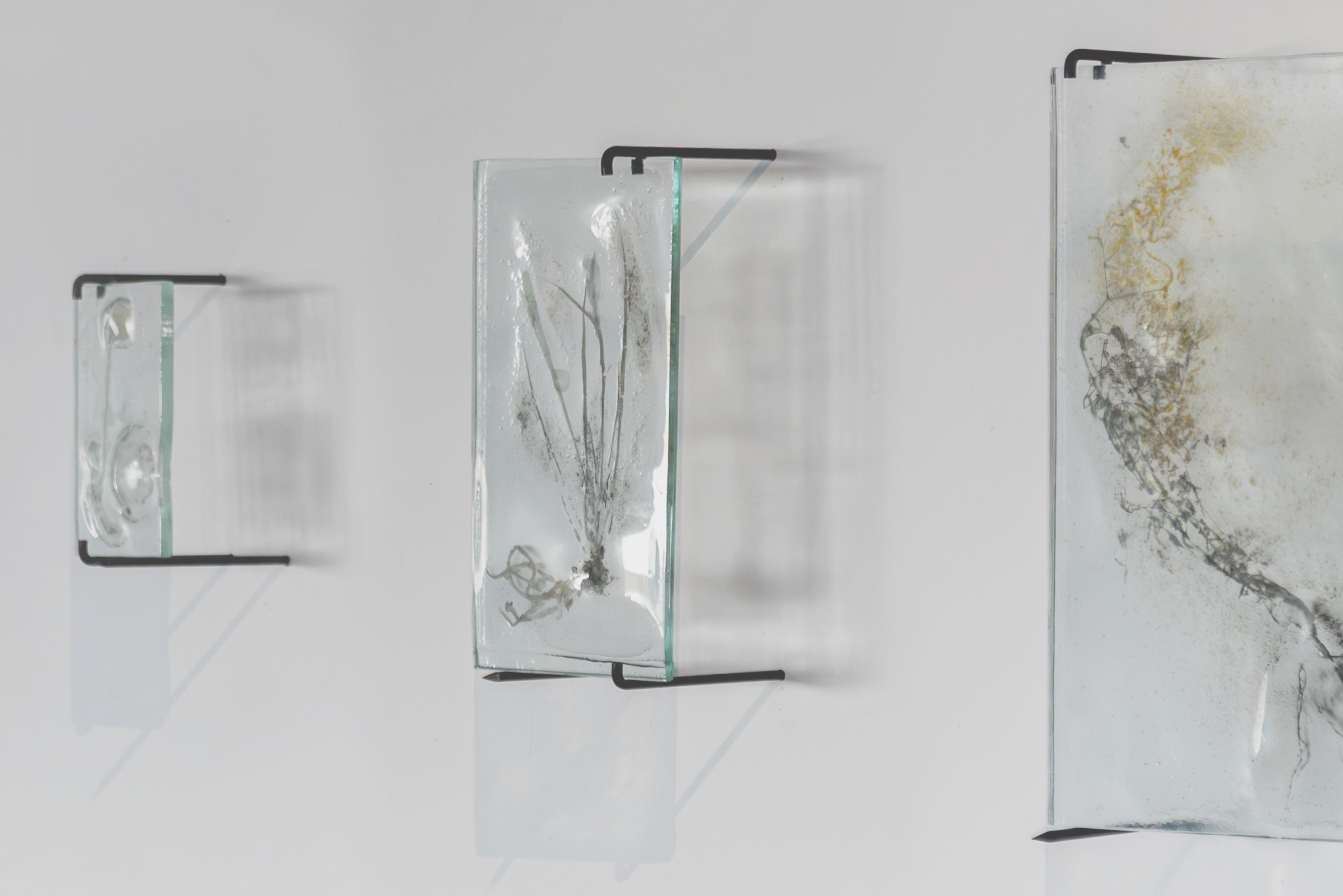 Various plants, glass powder, glass plates and steel rods, variable dimensions. The herbariums where produced during a workshop organised in partnership with Cirva (International Center of Glass and Plastic Arts).